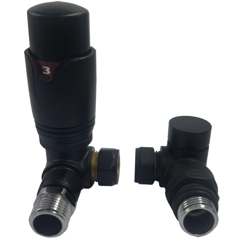 Thermostatic Corner Radiator Valve Matt Black (Pair)