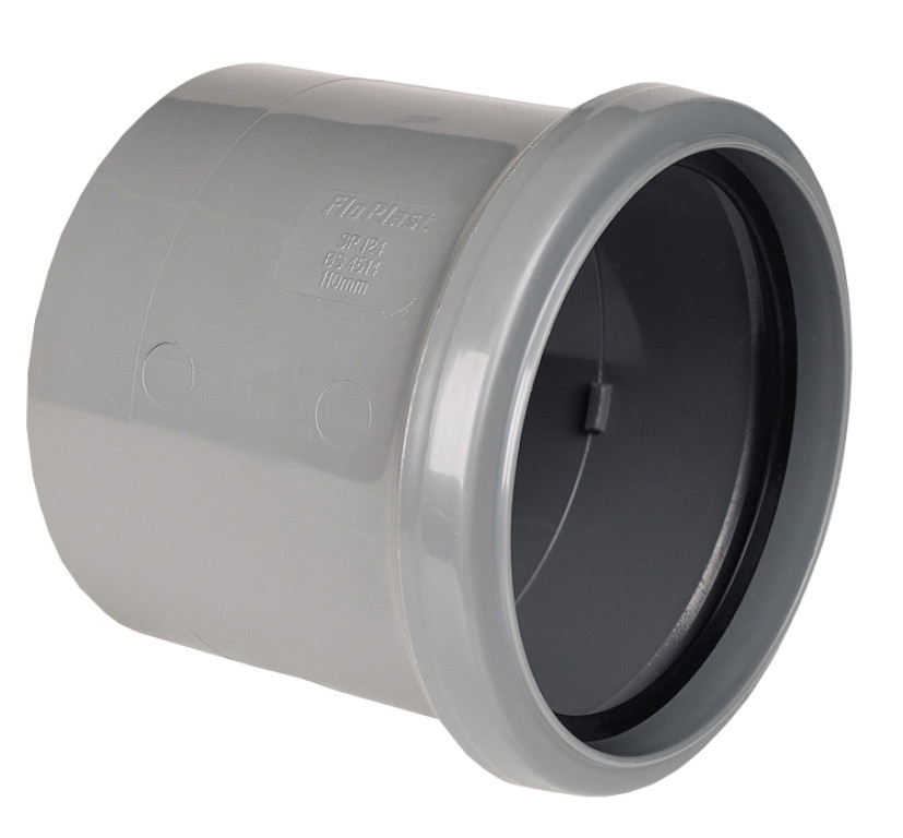 FloPlast Soil - 110mm Ring Seal PVC-U Single Socket Coupling - Grey