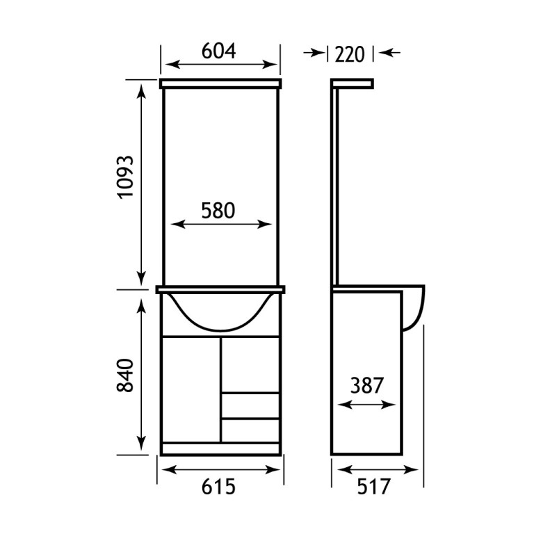 - 580 x 215 x 1093mm